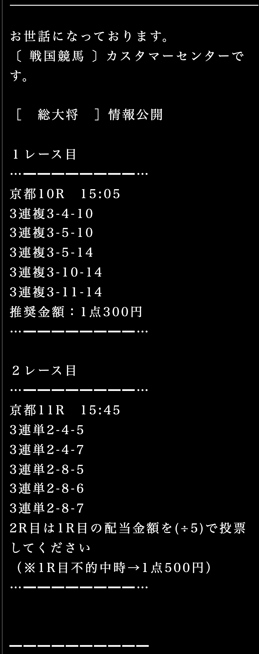 「総大将(そうだいしょう)」は戦国競馬の中で最強分散投資と言われているプランです‼︎