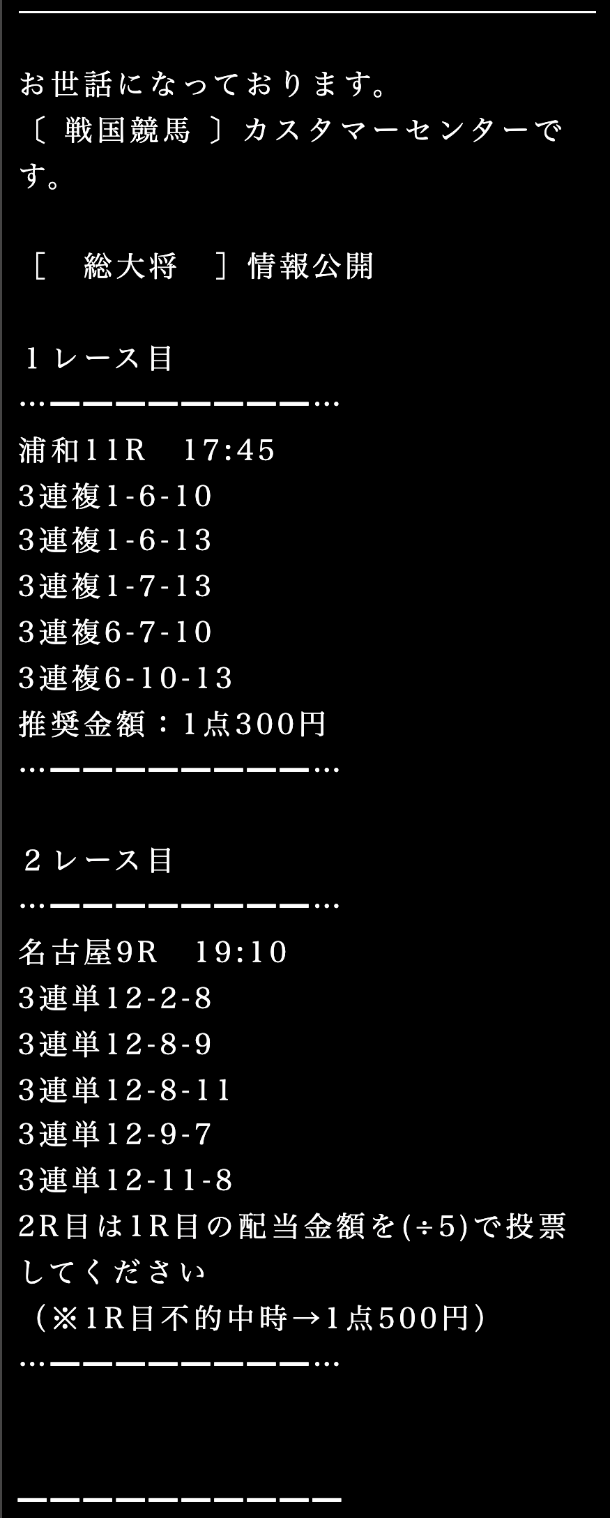 「通常プラン」とはまた違う良さがあるので毎日戦国競馬から届く配信を見逃さないようにしています。